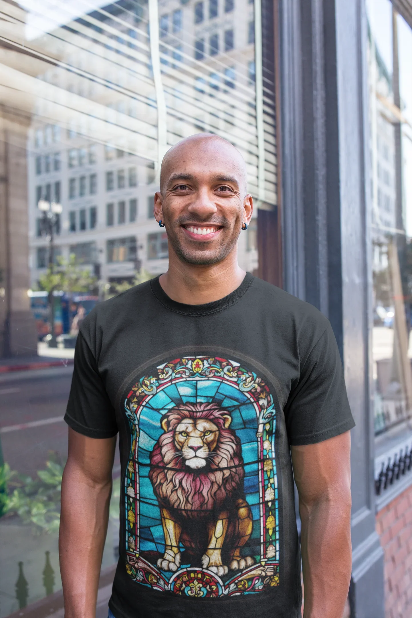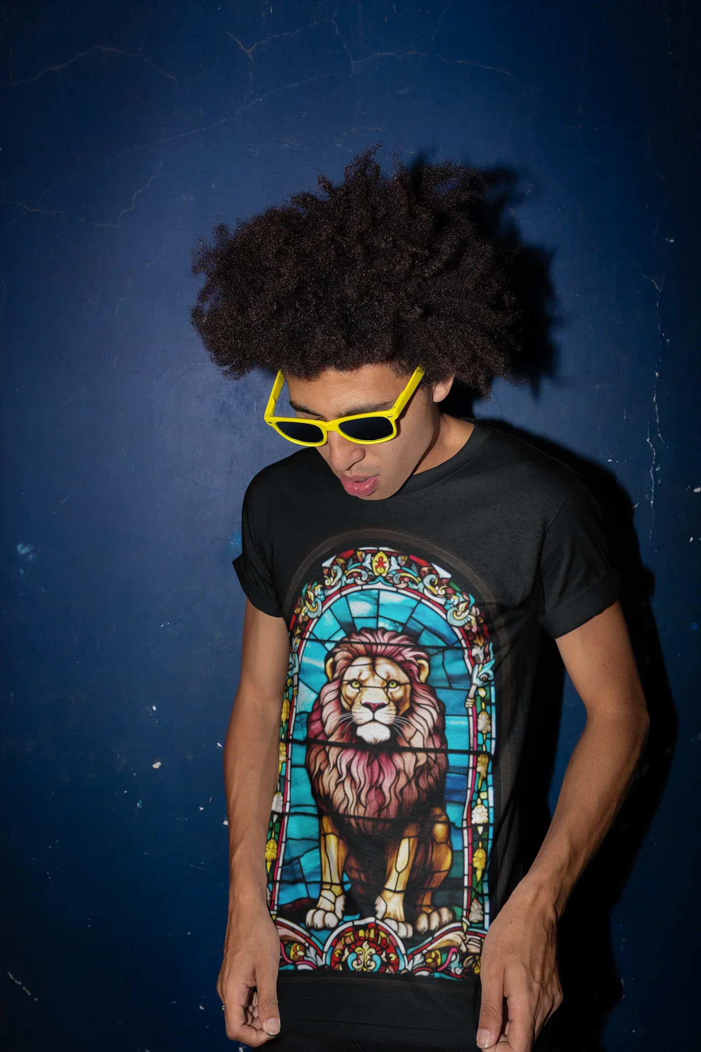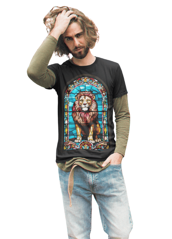 En términos prácticos, esta playera está confeccionada con algodón orgánico suave, proporcionando la comodidad que necesitas para mantenerte fresco y relajado durante todo el día. Su estampado de alta calidad, suave al tacto, garantiza durabilidad y resistencia al lavado, manteniendo vivos los colores vibrantes y los detalles intrincados del vitral del León de Judá.