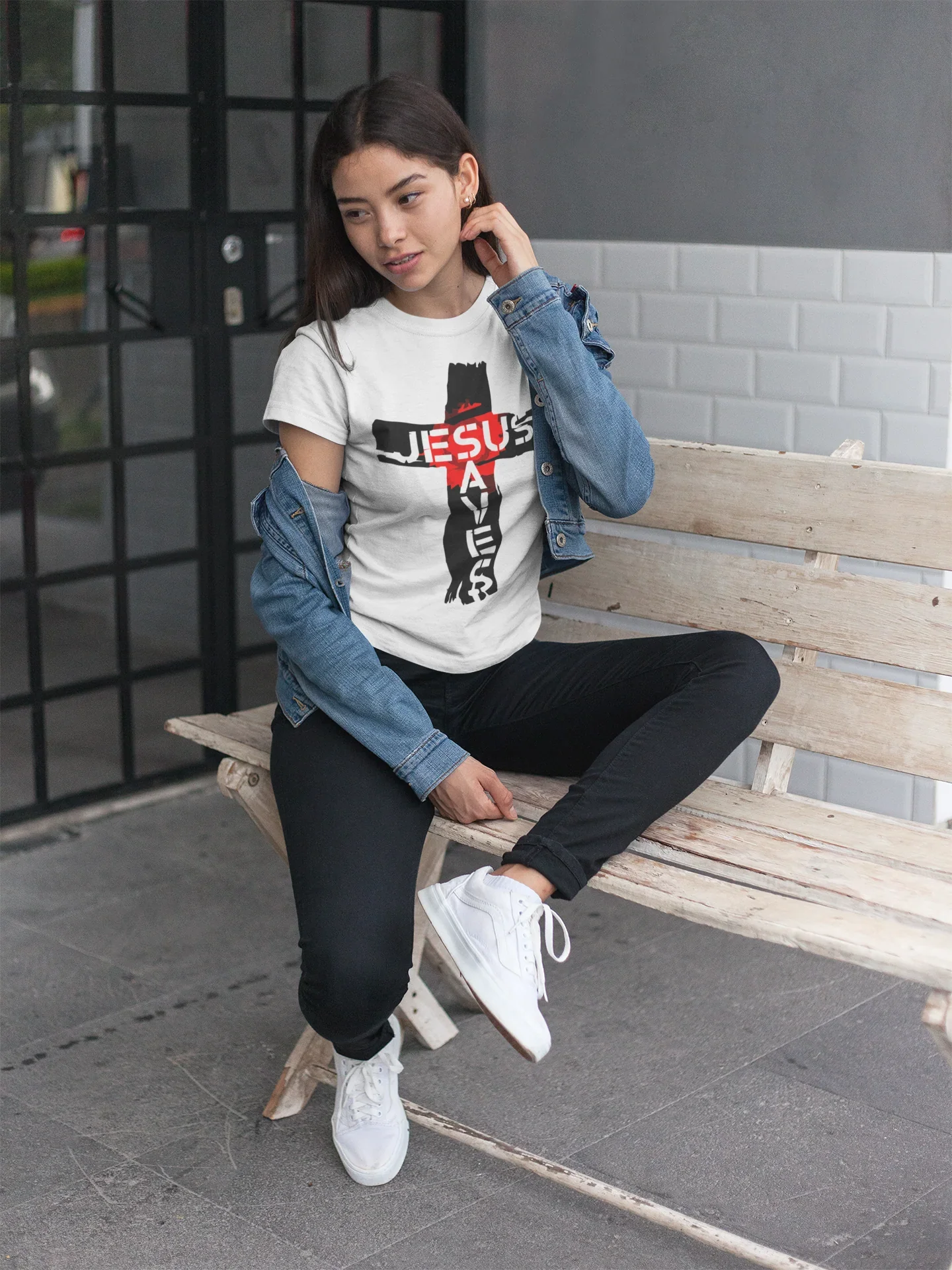 Diseño limpio y directo con la frase inspiradora “Jesús Salva”.