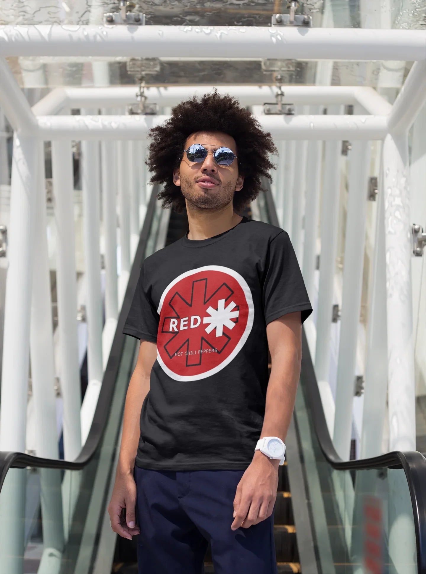 Imagina un día perfecto para asistir a un concierto al aire libre o simplemente pasear por la ciudad con tus amigos, luciendo tu estilo auténtico y mostrando tu amor por la música que te inspira. La playera "Red Hot Chilli...