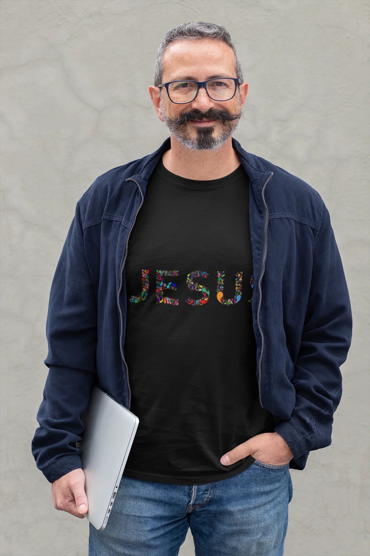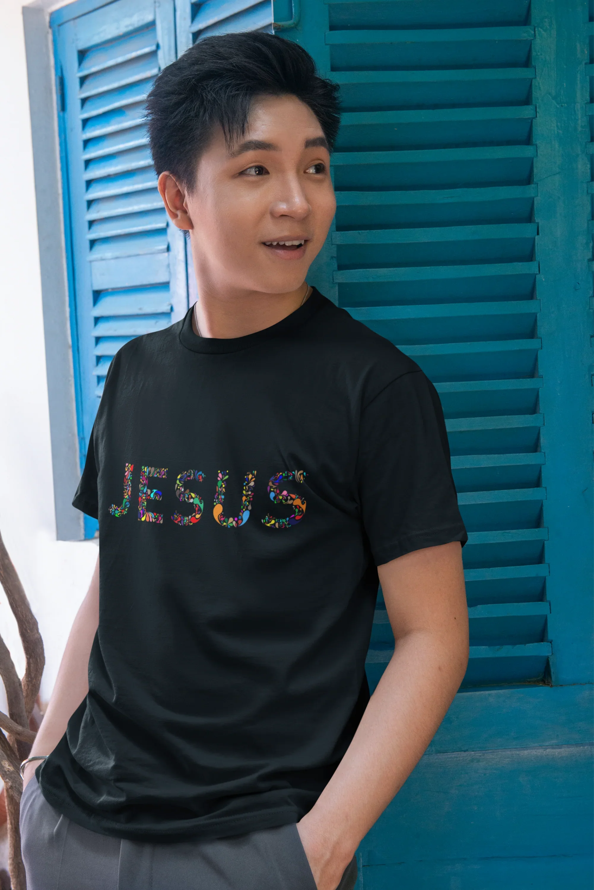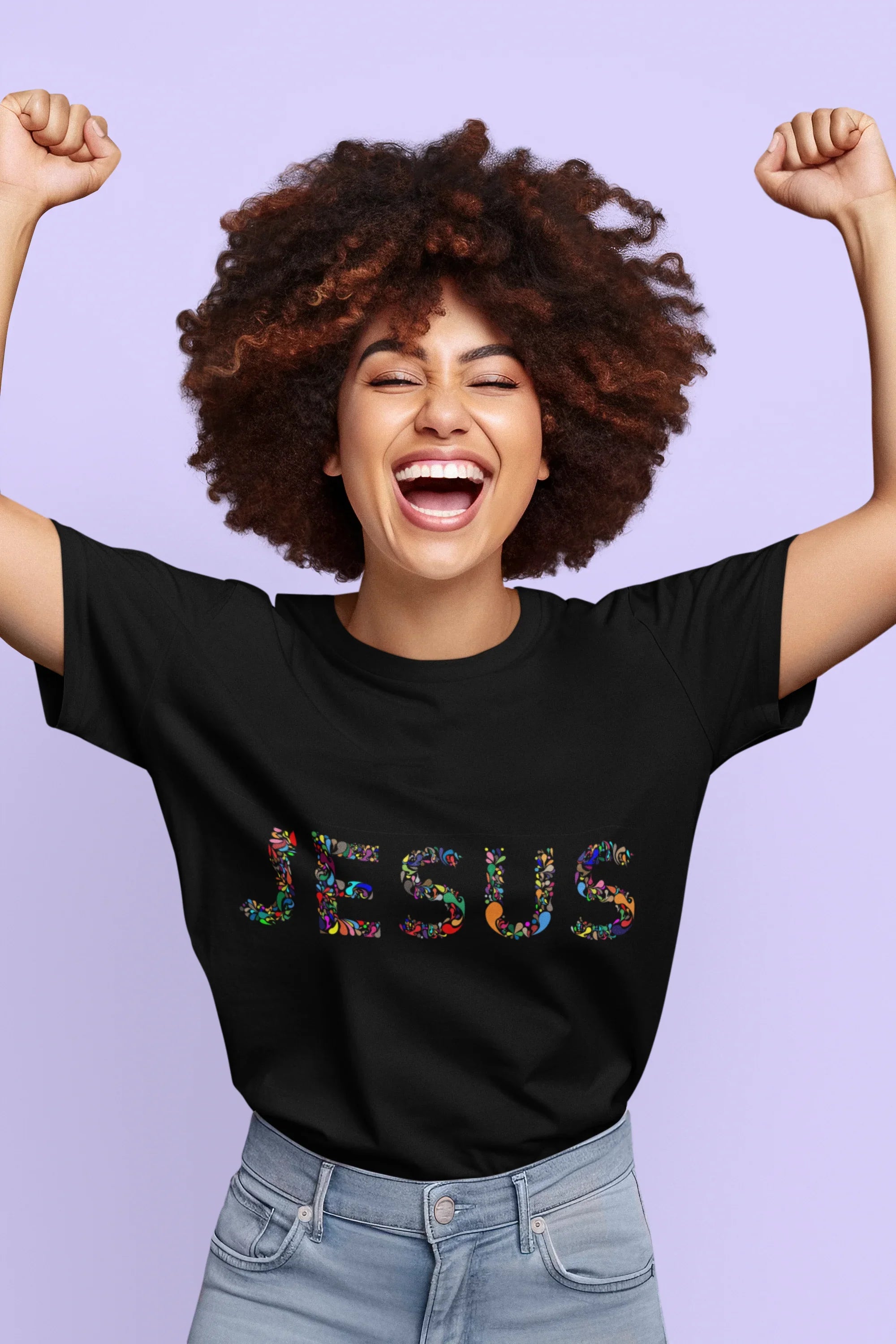 Diseño único con la palabra “Jesús” en estilo vitrales que simboliza la esperanza